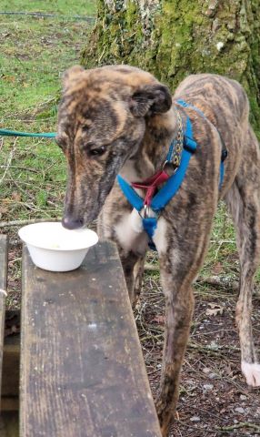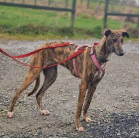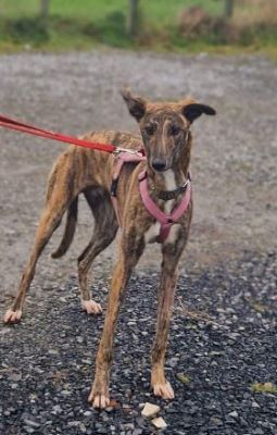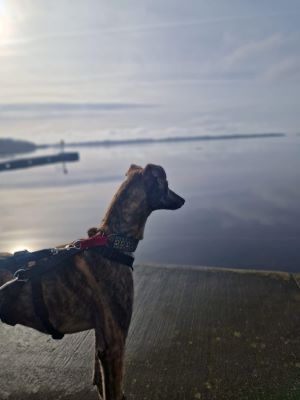 Kells (born approx November 2022) is a young male lurcher who has seen little of life. On the smaller side, he’s eager to please and is learning all about the world. He’d love an owner who can continue to introduce him to all the joys of life as a pet, at his own pace.