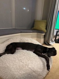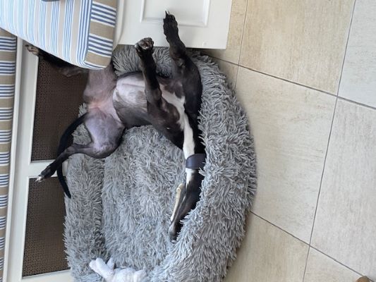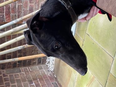 Thimble (born Sept 2020) is a delightful, smaller female greyhound. She has adapted well to life in a foster home where she is clean and dry and sleeps well at night. She enjoys her walks and meets other dogs politely.