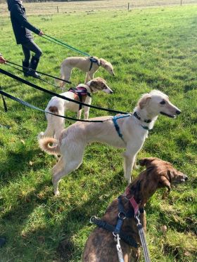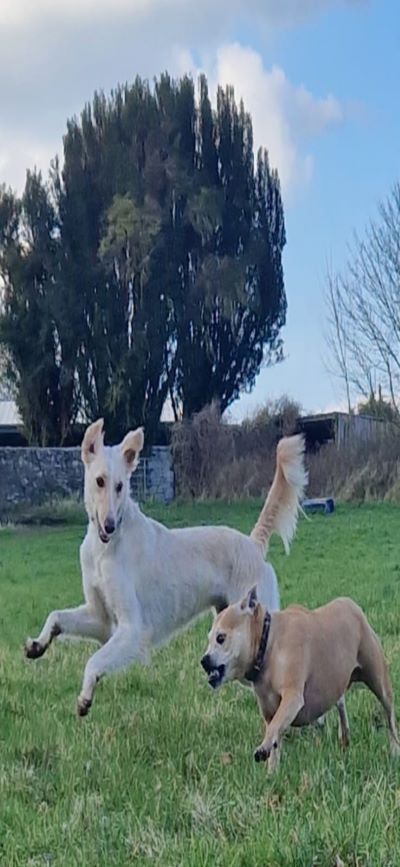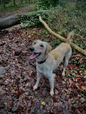 Chandler (born approx Sep 2021) is a young saluki cross boy. He was found, scared and alone on the motorway but has since blossomed into a fun, sociable boy. He loves walks, zoomies and playing with his friends.