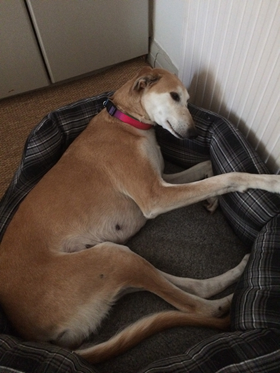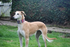 Jazz, who is around 4-5 years of age, is a pretty, medium-sized lurcher. Having been rescued from an awful situation, she has been spending time in a foster home where she has been learning about life in a family home. Her foster Mum says she is a polite and gentle girl who is great company. She loves people of all ages including small children. She walks well on the lead and is used to traffic, although she also loves the countryside. She travels well and has been on camping trips which she loves!