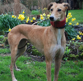 Vivette (born approximately June 2017) is a female lurcher who was found in a shed, mentally and physically finished by mange and starvation, after months on the run. Having had this horrendous experience, she is understandably fearful of new people and experiences so would like a quiet home with routine and one or more other dogs. When she feels relaxed, she is a loyal and loving girl. She recovered physically with a month of rescue as you can see. She is playful and energetic with people she trusts. She will need a very secure garden in which to play and let off steam and a vigilant and understanding owner. She is neutered and microchipped. If you have what we are looking for to help Vivette on her road to the happy future she deserves, please contact us.