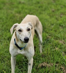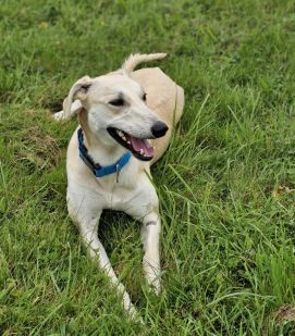 Misneach (pronounced Mis-Knock), born August 2023, is a larger male lurcher.