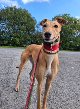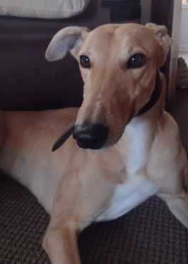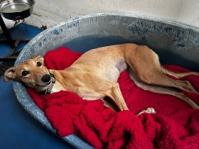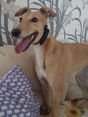 Daisy (born May 2021) is a beautiful female greyhound who would like a home with an enclosed garden for zooming about and playing with her toys. She loves people and could live with older respectful children.She would prefer not to live with small dogs or cats.