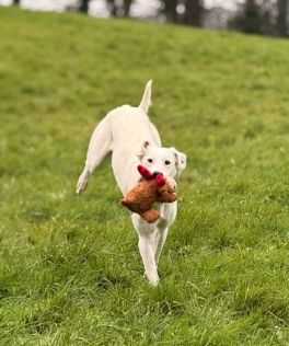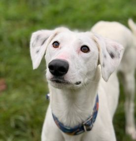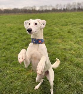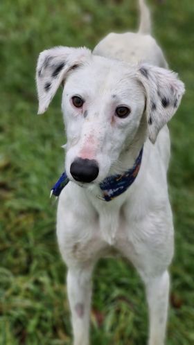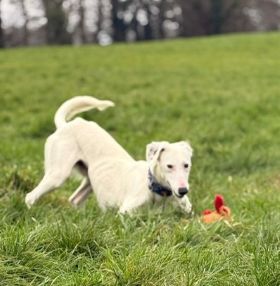Tote ( born November 2023) is a stunning, medium sized male saluki lurcher with a lovely feathery tail and distinctive ears. He is a friendly lad who likes to say hello.