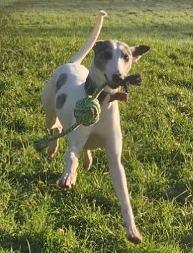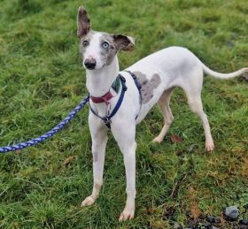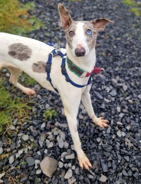 Eeyore ( born January 2025) is a male whippety lurcher who is looking for a particular type of home. He needs someone with experience of guiding a puppy towards being a good canine citizen along with patience and consistency. He has a lot to learn and were he to live with other dogs, he would need them to be playful but also capable of setting a good example to a young gun like him.