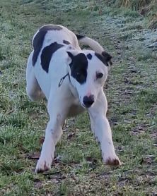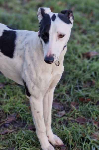 Who dat ( born January 2025) is a smallish male lurcher who would be a suitable introduction to sighthound ownership as he is straight forward and friendly. He enjoys walks and playtime so would like someone around a reasonable amount and to be involved in the life of his new family.