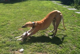 Kanga is a stunning, toffee- coloured greyhound (born May 2013). He is interested in learning about life in the outside world, is very affectionate and open to new experiences.