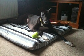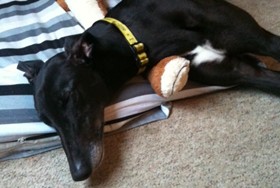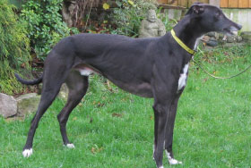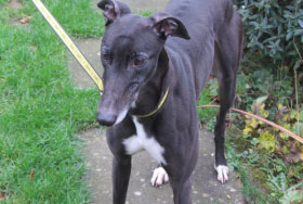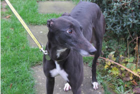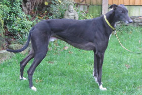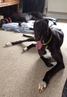 Tom (born May 2011) is an elegant male greyhound whose markings remind his fosterer of a tuxedo.