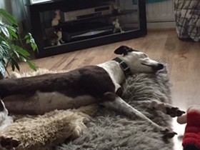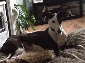 Dew is a delight who has settled in quickly. She can be left for reasonable periods of time and is crate trained . She is eager with treats but fine with food. She walks well on the lead but likes to be in front and thoroughly enjoys her time out the house, She is clean and quiet in the house. Dew approaches everything in life with enthusiasm. She gets on well with other dogs but enjoys human company and would be fine as an only dog in a house without young children.