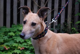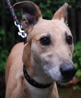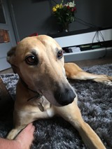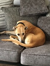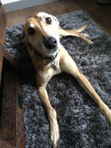 Skylar (born Sept 2017) is a smallish female lurcher who seeks a loving home. She is friendly, affectionate and can sit nicely. She enjoys play and is good with other dogs. She is doing well in foster care and could live with respectful children.