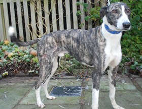 Hertz (born October 2018) is a very friendly male lurcher who lives to love. His tail never stops wagging which illustrates his forgiving and happy personality.