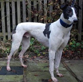 Schweppes (born Aug 2015) is an eye -catching friendly, male greyhound who loves cuddles but is a sensitive soul when it comes to venturing out alone. He could live with older children and is very sociable with dogs and people but would like to live in a home where he can just blend in and follow the lead of other dogs when it comes to going out into the garden etc as he is just a big baby!