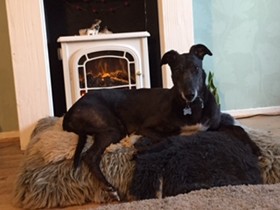 Satin (born September 2015) is a female greyhound who is affectionate and funny. She could be an only dog or live with other medium or large dogs. She is crate trained. She loves her toys and enjoys gathering them on her bed as well as your slippers and books occasionally! Her fosterer thinks she is quite a canny character but very sweet. She adores getting ready for and going on, walks round the block.