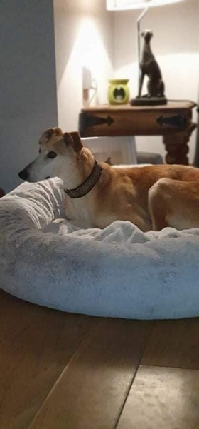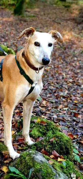 She arrived at her foster home meek, confused and quite shut down but a different, puppyish, Imani has emerged who is making up for lost time. She is playful, active and tough as old boots. She may be older but she can get up to all sorts of devilment when home alone with her houndie mates but it’s a joy to see this side of her.